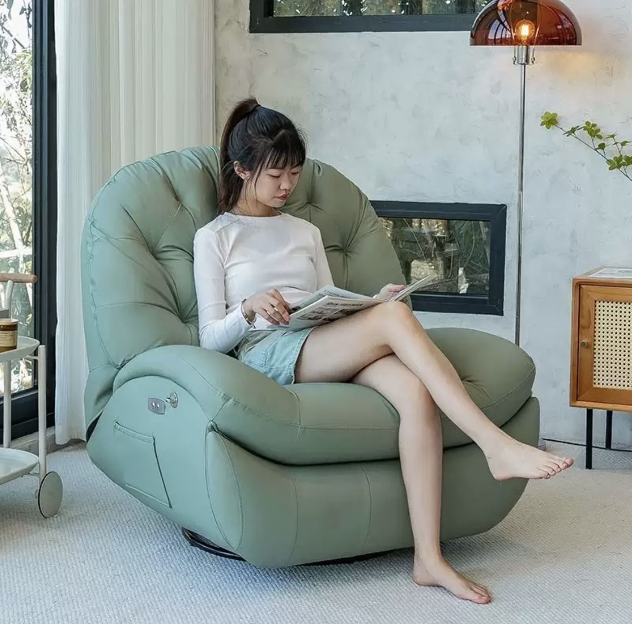 Synthetic Leather material Electric recliner chair with phone holder